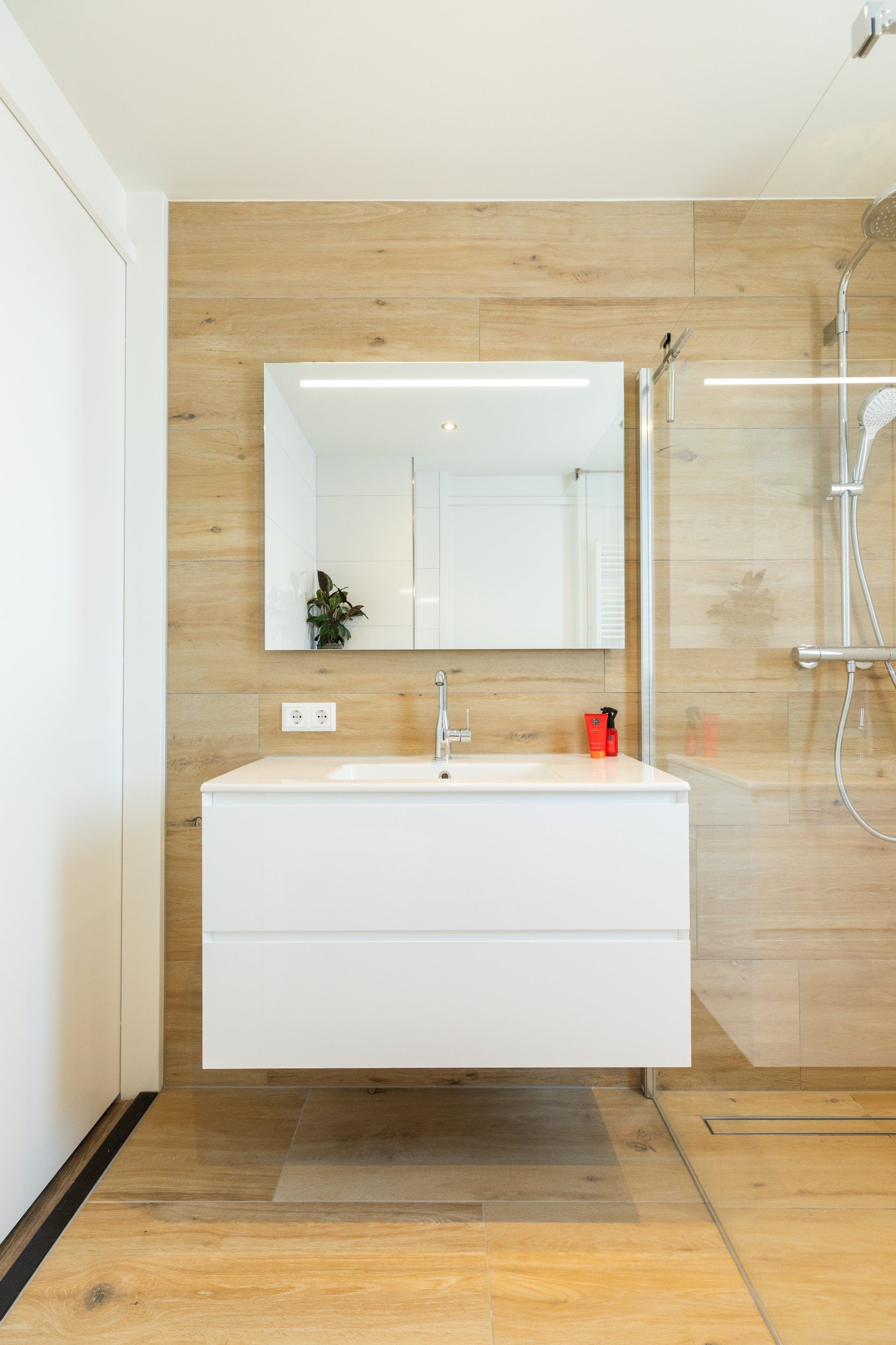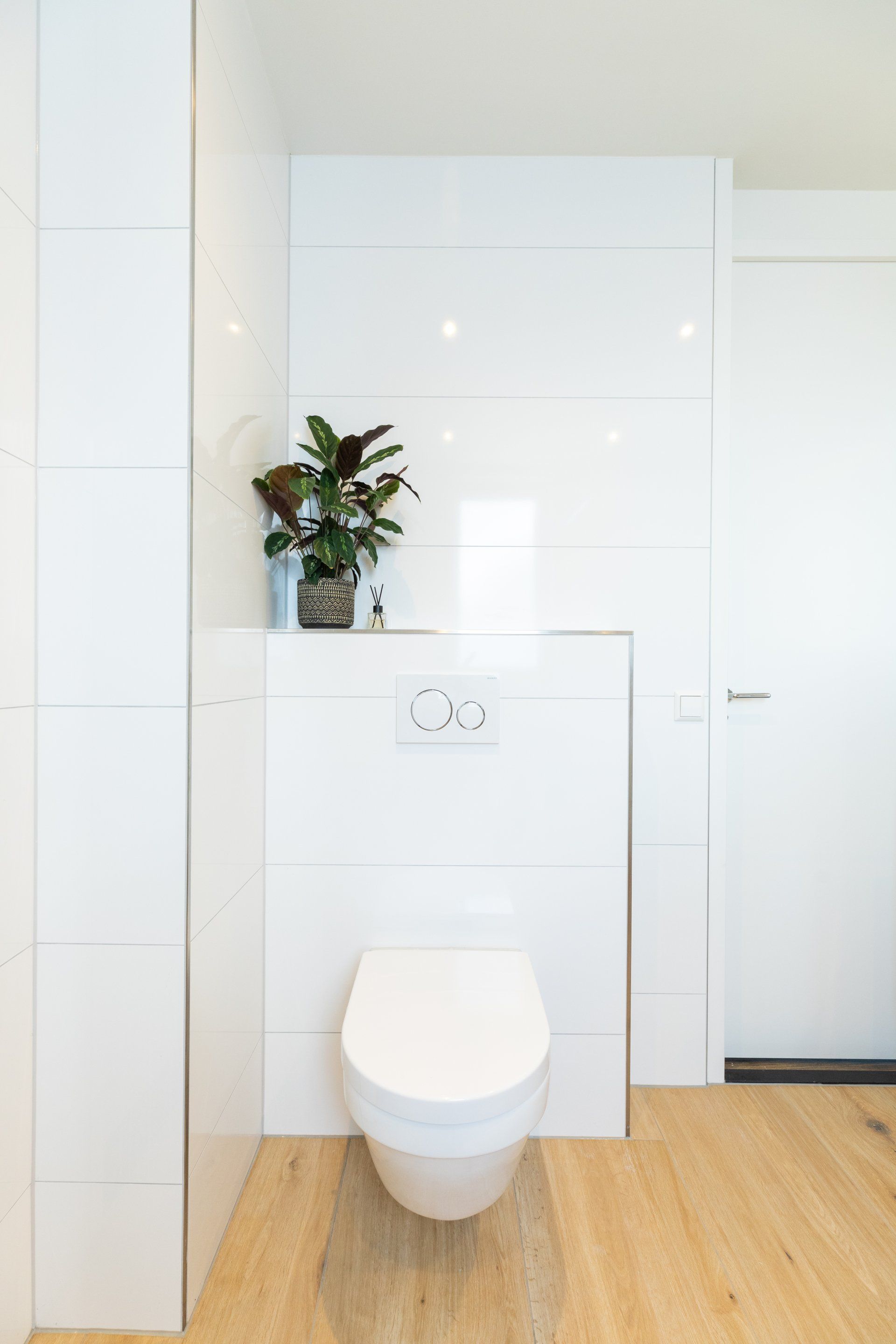 Het eindresultaat zijn twee frisse nieuwe ruimtes. Waarin zowel in het toilet, als in de badkamer gebruik is gemaakt van houtlooktegels voor de vloer en in beide ruimtes één accentwand. Voor de overige wanden is gekozen voor frisse witte wandtegels. Voor de afwisseling is er in het toilet tevens gekozen voor diverse sanitaire onderdelen in mat zwart. In de badkamer gaat het witte en chrome sanitair juist mooi op in de ruimte.